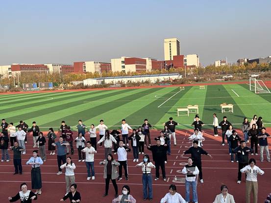 赛前,参赛师生进行了热身运动。