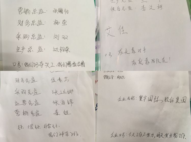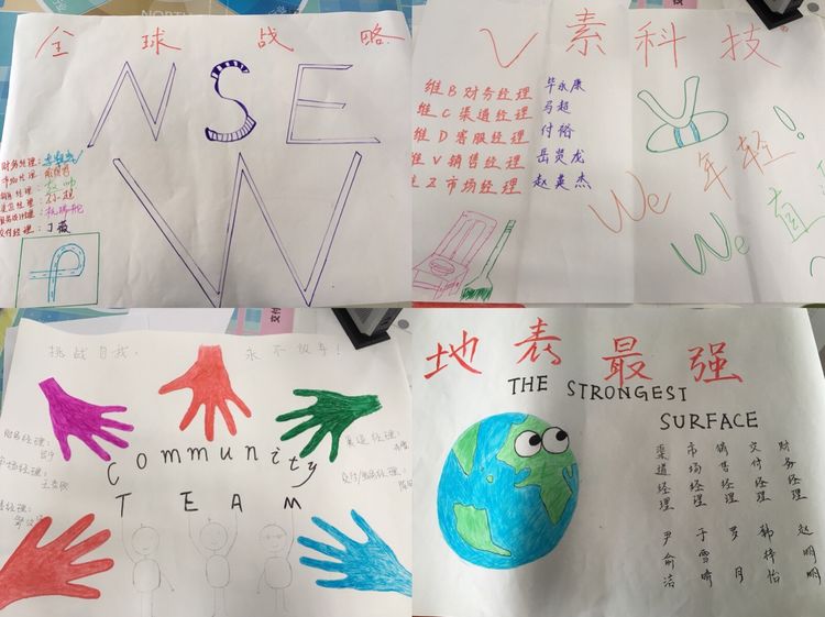 实训的第一步是组建团队。看我们的口号多么响亮!我们准备好了,让商战来的更猛烈些吧!