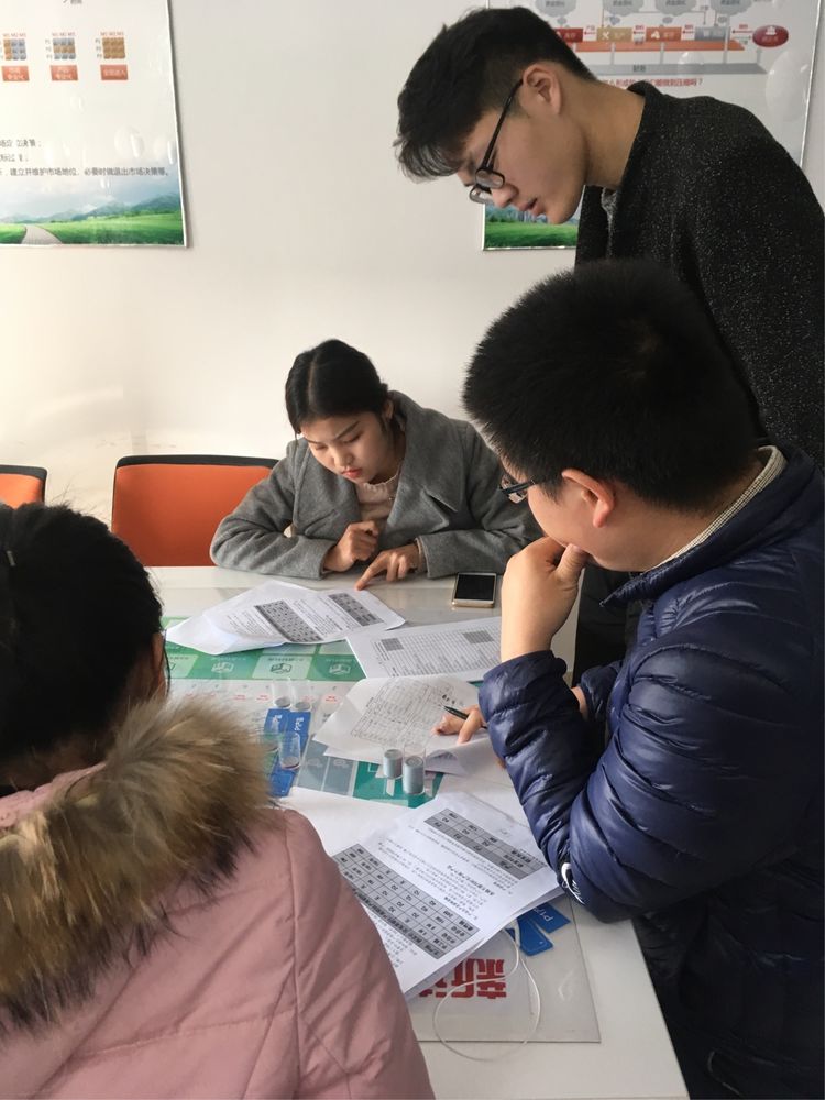 在院领导的大力支持下,经过前期充分准备,同学们期待已久的沙盘模拟实训课程开课啦!在12月4日至8日五天的时间里,16级市场营销的同学们体验了企业经营管理沙盘和市场营销实战沙盘两个项目。大家怀着兴奋又好奇的心情,投入到紧张又刺激的模拟对抗中。