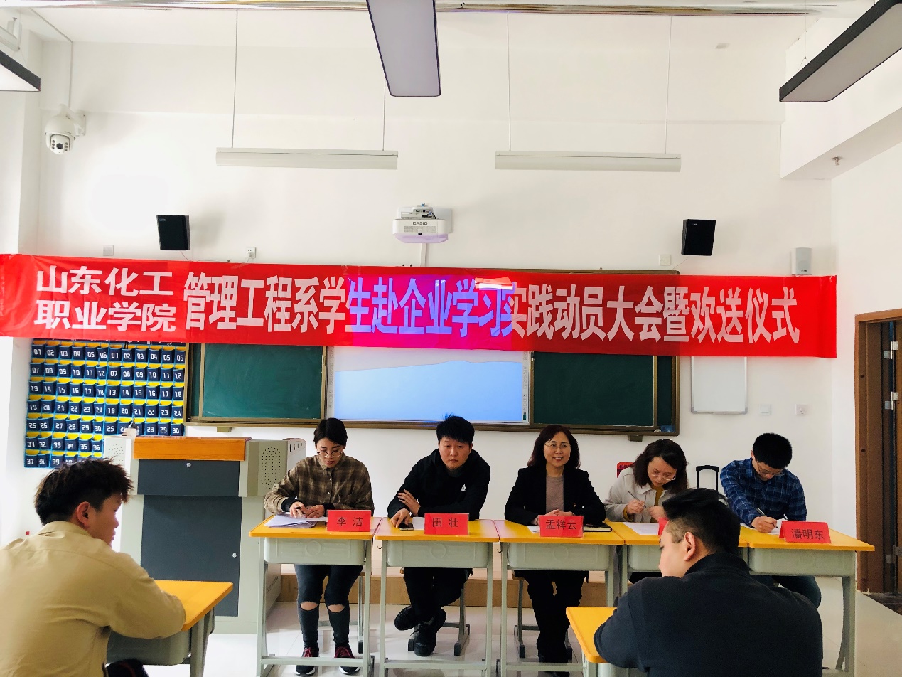 孟祥云主任分析了此次“工学交替”的目的,指出通过阶段性校外学习实践,可将专业知识运用到实践中去,实现理论与实践的紧密结合,更好地掌握专业技能,更好地服务地方经济发展。朱彬彬副主任强调在校外学习实践期间,同学们一定要注意安全,服从企业安排,遵章守法,诚实守信。学生代表郑秀霞也带领全体学生宣誓:认真工作,提高技能,以优异的成绩回报母校,不负所学。动员会后,系领导、老师亲自欢送学生赴企。