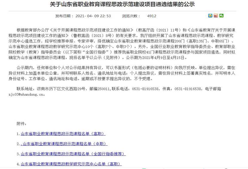 4月9日,省教育厅发文公示,由管理工程学院孟祥云教授带领团队建设的《电子商务实务》项目,经省厅专家评审,认定为山东省职业教育课程思政示范课程,目前已进入公示期。