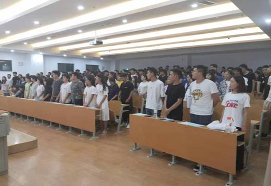 最后,由学生代表徐浩带领2017级全体学生进行了顶岗实习宣誓:遵规守纪,忠于职守;爱岗敬业,刻苦学习;不忘初心,牢记使命;团结奋进,乐于奉献;时刻维护化院形象,超越自我,争创辉煌。
