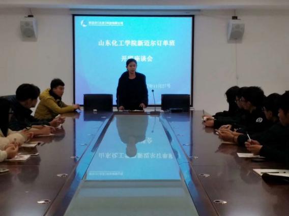 2017年10月17日,山东化工职业学院与新迈尔(北京)科技有限公司正式签约,电子商务专业成为我院第一个校企共建专业。企业岗位核心课程的植入及企业师资的加入,吸引了2017级17名同学自愿加入新迈尔订单班。2017年11月27日,订单班于4308教室顺利举行了开班仪式。