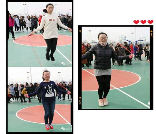 绳如虹飞转,人似蝶翩跹;起落轻盈舞,欢乐满校园。3月7日下午,伴随着和煦的春风,山东化工职业学院庆祝“三八”妇女节女职工跳绳比赛在篮球场热烈举行。管理工程系13名女教师参加了此次跳绳比赛。曼妙的身姿,激烈的角逐,阵阵的欢歌笑语,将青春的校园装扮得活力四射,热情洋溢。