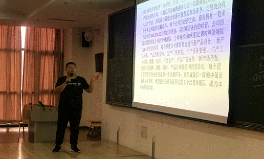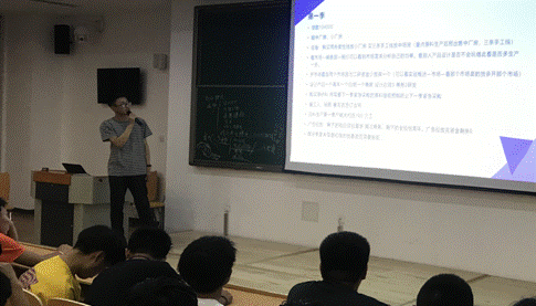 讲座中,两名学生代表结合比赛实际从新产品设计研发、原料采购、厂房设备购买、员工招聘等方面进行讲解,让2018级学生对“创业之星”平台和“学创杯”比赛有了初步认识。