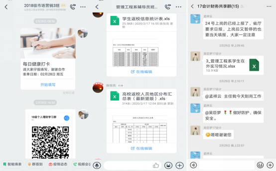 线上直播和网课自学+线上指导均按调整后的课程表及教学班级建立学习群,辅导员及时通知所有任课教师及学生入群,系领导、教学秘书和专业负责人分工入群掌握各教学班线上教学情况,及时监控教学过程,推进线上教学改革。