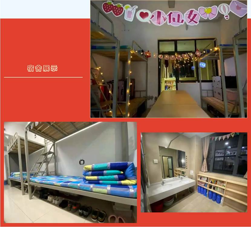 宿舍条件配置高,独立阳台、独立卫生间,配有电梯,宿舍内配有中央空调,标准六人间。