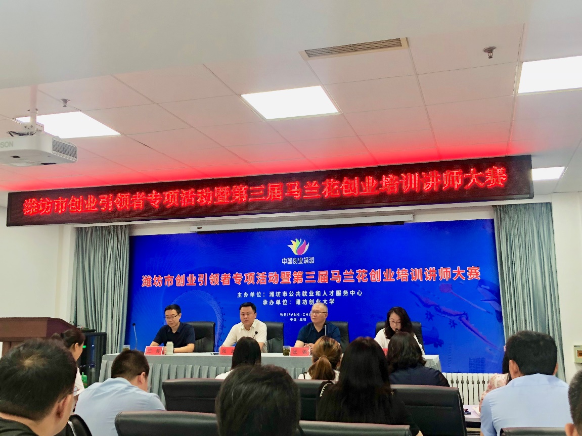 为更好地发挥创业带动就业作用,引领创业培训发展,支持高校创业师资队伍建设,6月26日,由潍坊市公共就业和人才服务中心主办的“潍坊市创业引领者专项活动暨第三届马兰花全国创业培训讲师大赛”顺利举行。