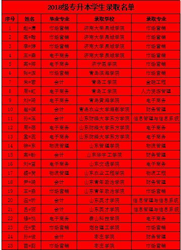 喜报!喜报!山东化工职业学院管理工程学院学子在2021年山东省专升本考试中取得优异成绩,我院2021届毕业生25名同学被山东青年政治学院等高校录取。