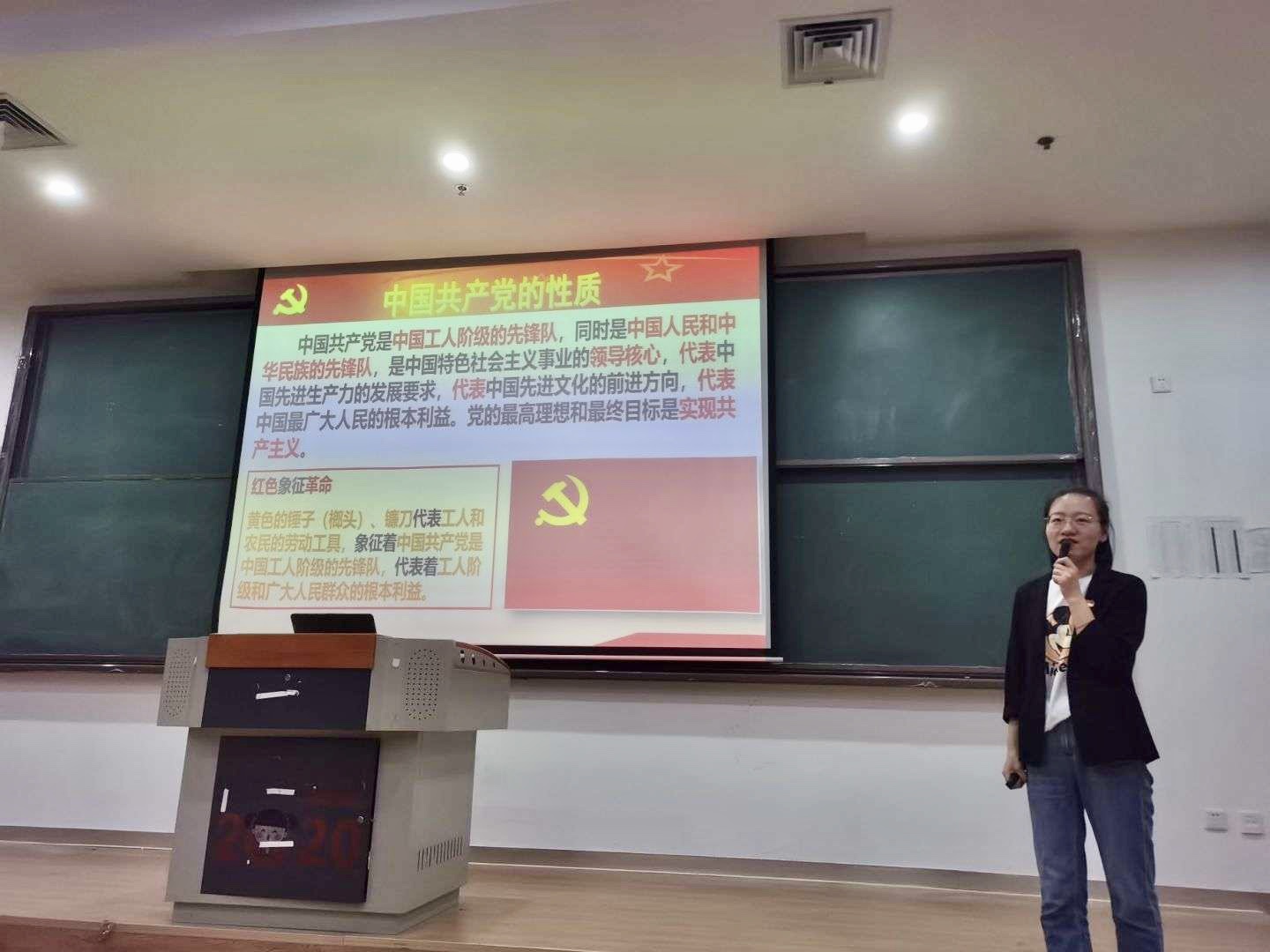在第二会场的袁海心老师从“忆党史”、“初心与使命”、“大学生为什么加入中国共产党员”及“入党申请书的撰写”几个问题入手进行了启蒙教育。
