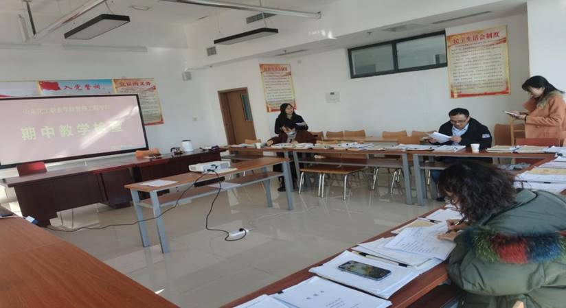 11月10日,学校教务科研处丁竹青副处长一行三人到管理工程学院进行期中教学检查,学院领导全程陪同、答疑,各位教师准备充分,以全新的面貌迎接学校检查。对于学校检查过程中发现的个别教师项目化教学落实不到位、知识能力目标表述不规范、教学进度计划与课程标准差距大、作业布置偏多等问题,管理工程学院及时反馈给相关教师认真整改,教研部专门召开会议研讨调整作业量等。