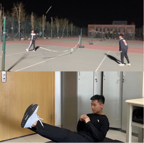 学生在操场打羽毛球、宿舍内健身
