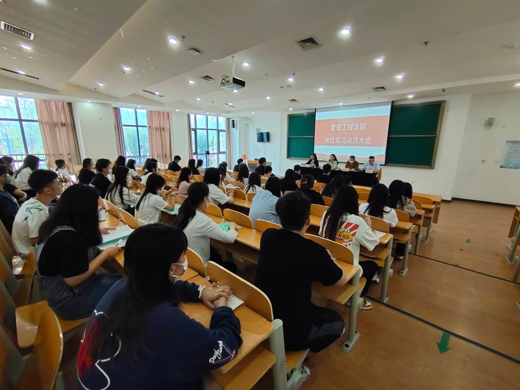 6月11日,管理工程学院2020级跟岗实习动员大会在八号阶梯教室举行,管理工程学院院长朱彬彬,副院长孟祥云、党总支副书记朱怀红、2020级全体辅导员及在校学生参加会议,会议由刘宁老师主持。