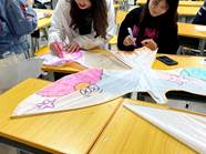 活动开始前,为了增加学生干部的动手创作能力,本次活动放飞的纸鸢均为白色,学生干部们进行了纸鸢彩绘,纸鸢在学生的热情绘画中逐渐成型。