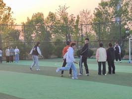 “纸衣往返接力”是必须借助风力向前跑,跑的过程中,随意停下来,纸也会掉下来,通过这个游戏,同学们能够手脚并用,达到全身的平衡发展。