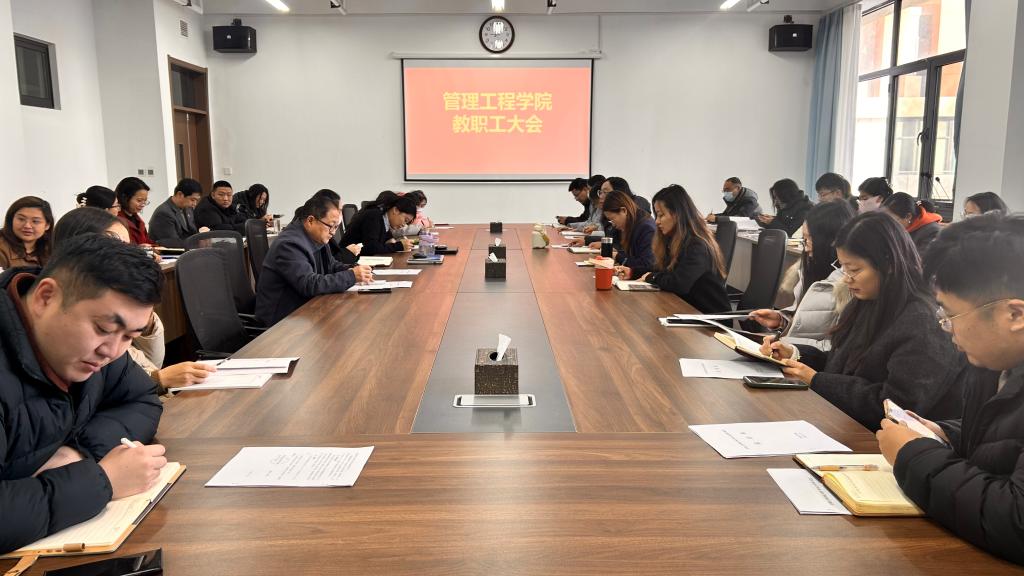 回望蓄力,笃行致远。为持续推进学院高质量发展,确保下学期各项工作平稳有序进行,1月7日上午,管理工程学院在4219会议室召开全体教职工大会,总结2024年度工作实绩,部署2025年度重点任务。管理工程学院院长朱彬彬、副院长朱莎莎、院长助理贺培培及学院全体教职工参加会议。