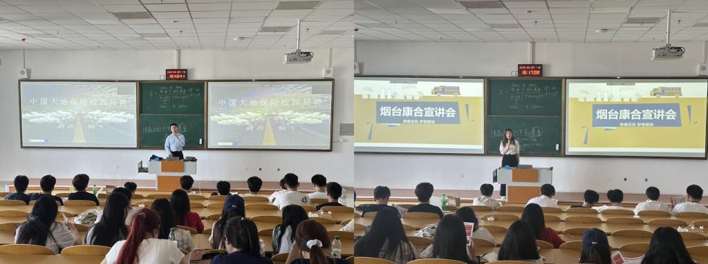 5月20日,中国大地财产保险股份有限公司与烟台康合营养家先后走进校园,举办2025届校园招聘宣讲会,为学子带来保险与大健康产业的就业机遇。
