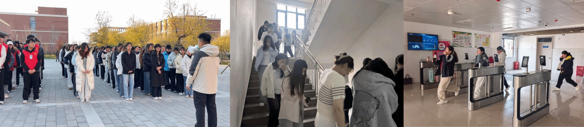 演练警报响起后,现场迅速进入实战状态。学生志愿者们分工协作、全程值守,在公寓楼道、楼梯口、疏散转角等关键点位引导疏导,耐心提醒同学们弯腰捂鼻、靠右通行,避免拥挤踩踏。同学们听从指挥,紧跟引导步伐,沿着预设疏散路线快速有序撤离,全程步调一致、井然有序,在志愿者们的护航下,所有人员顺利抵达指定安全集合区域,演练流程高效顺畅。