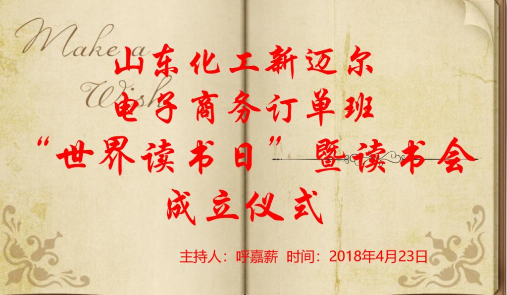2018年4月23日晚六点山东化工职业学院新迈尔订单班的全体师生在3404教室开展了一期以“让阅读成为习惯,让思考伴随人生,争做文明新迈尔新青年”为主题的读书活动,并创建了自己班级的读书会。