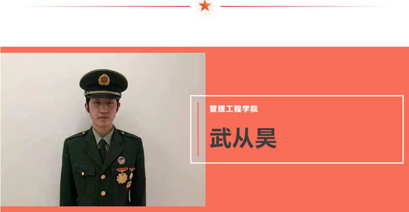 男,2017年入伍服役于中国人民武装警察部队,2019年光荣退伍现就读于山东化工职业学院管理工程学院2019级会计九班,曾担任院学生会体育部副部长,早操开展顺利,加强了同学们的体育锻炼,以军人的身份严格要求自己,遵从学校校规校纪,积极参与学校的各项活动,起到带头作用;学习努力,品学兼优,为人善良,与同学之间相处融洽,互帮互助。